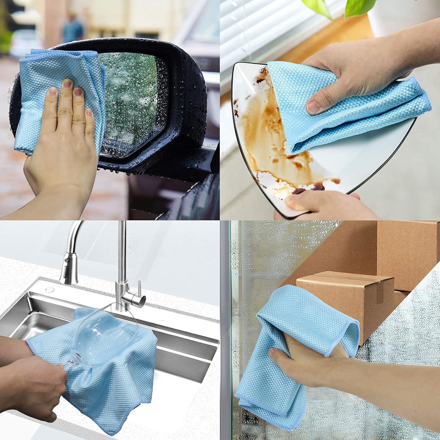 【Household Essentials】- This microfiber cleaning cloth does it all! lint free cloth perfect for Polishing mirrors and glass, Cleaning up spills and even the toughest stains, Drying plates and cooking utensils, Wiping countertops, Cleaning windows, Dusting, cleaning kitchens, sinks, furniture, cars, bathroom, placemats, wiping hands, and most electronic products.