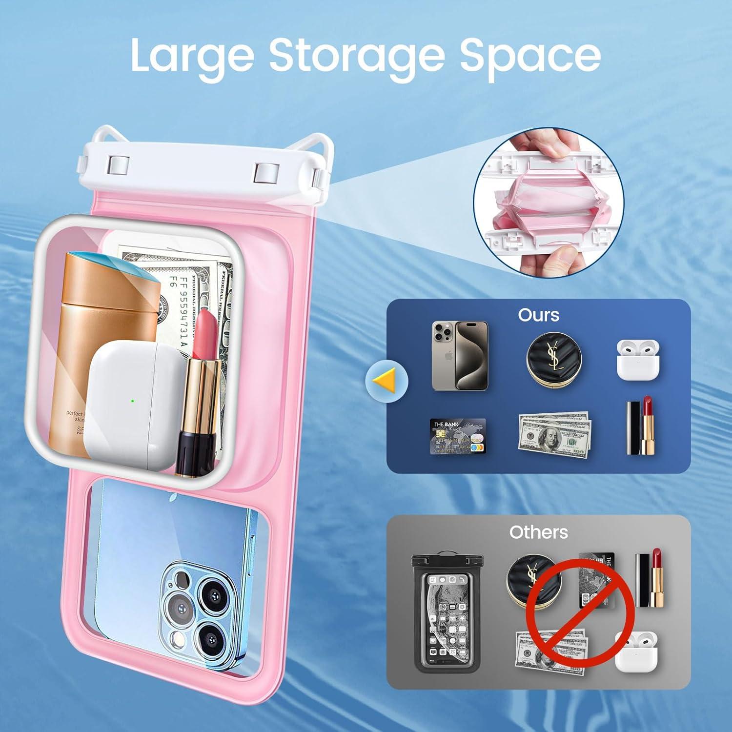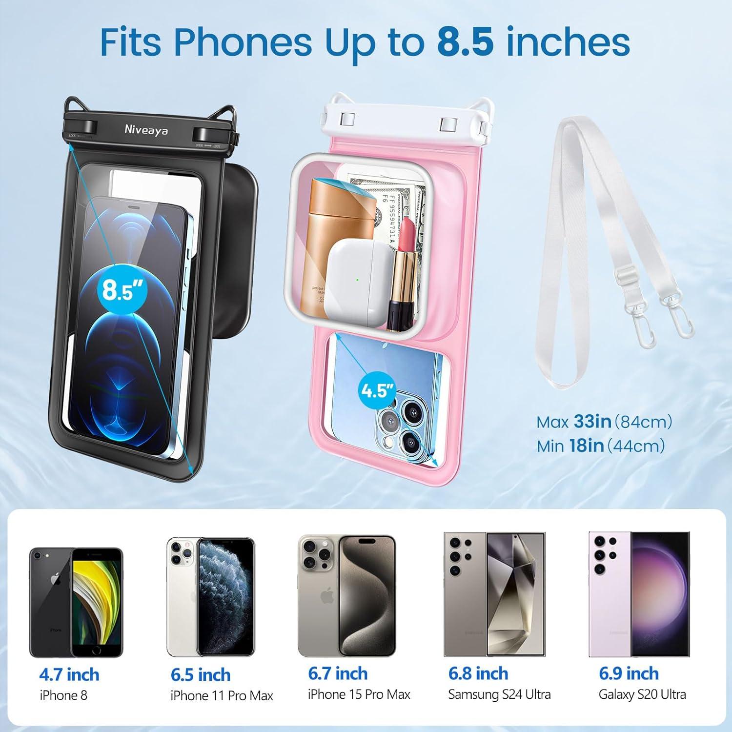 【Fits Most Cell Phones】- The water proof phone pouch iphone measures 8.5 inches and fits most cell phones with or without a case, providing double insurance for your phone. Fits large devices up to 7.5 inches, such as iPhone 16 15 14 13 12 11 XS XR X Pro Max Plus Mini, S24 S23 S22 Ultra and more.