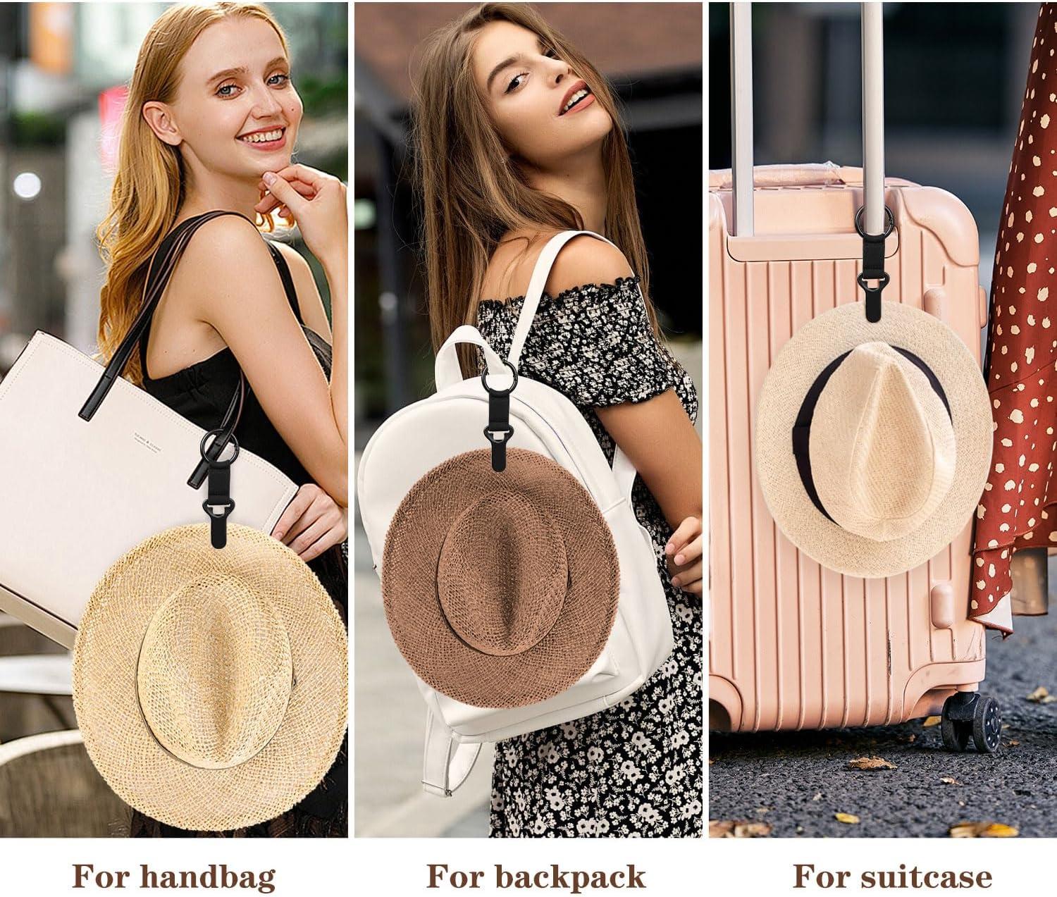 Niveaya Hat Clip for Travel on Bag - 2 Pack, Vacation Beach Cruise Essentials Accessory for Travel Handbag Backpack Luggage(Black + Pink)
