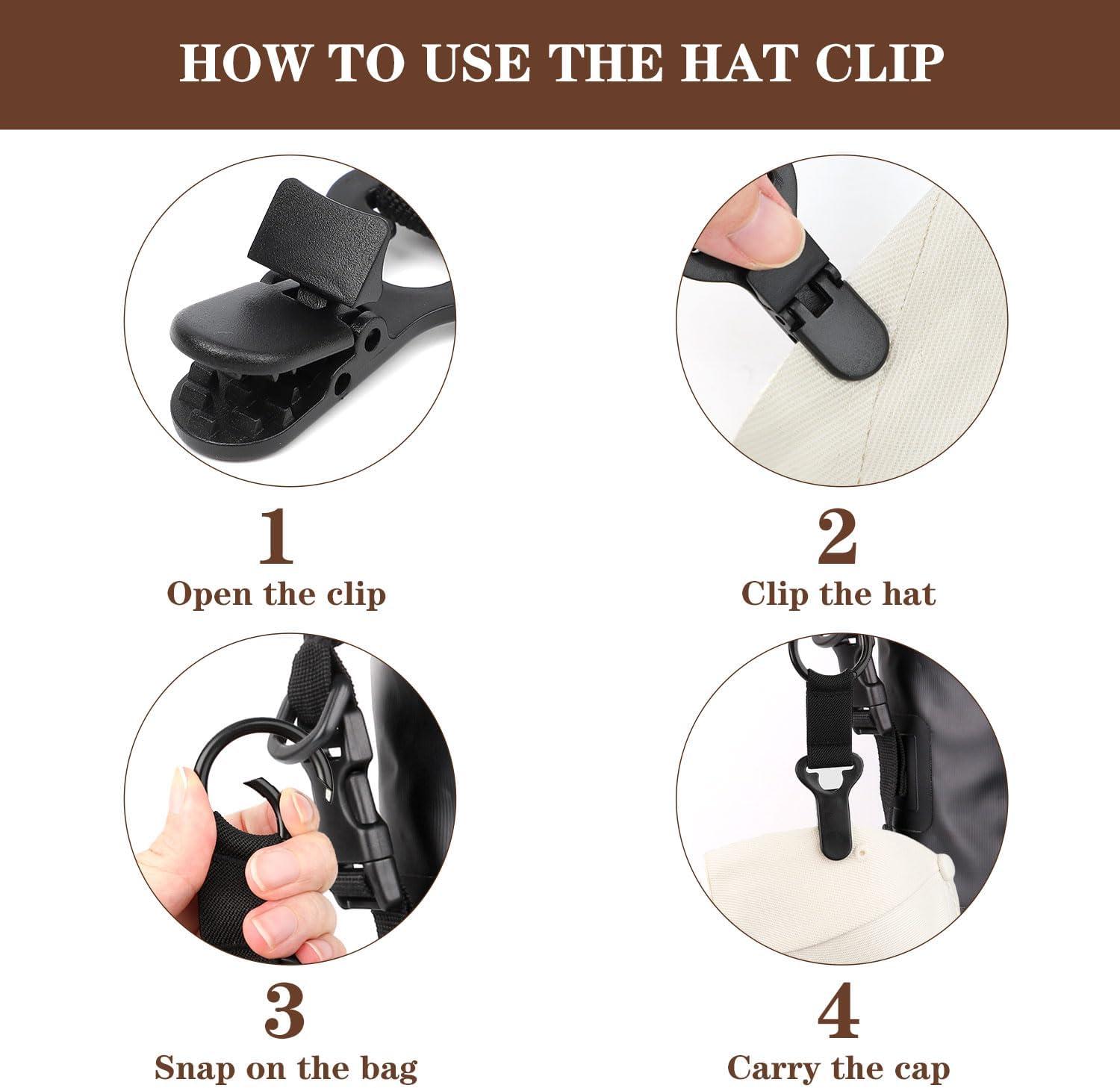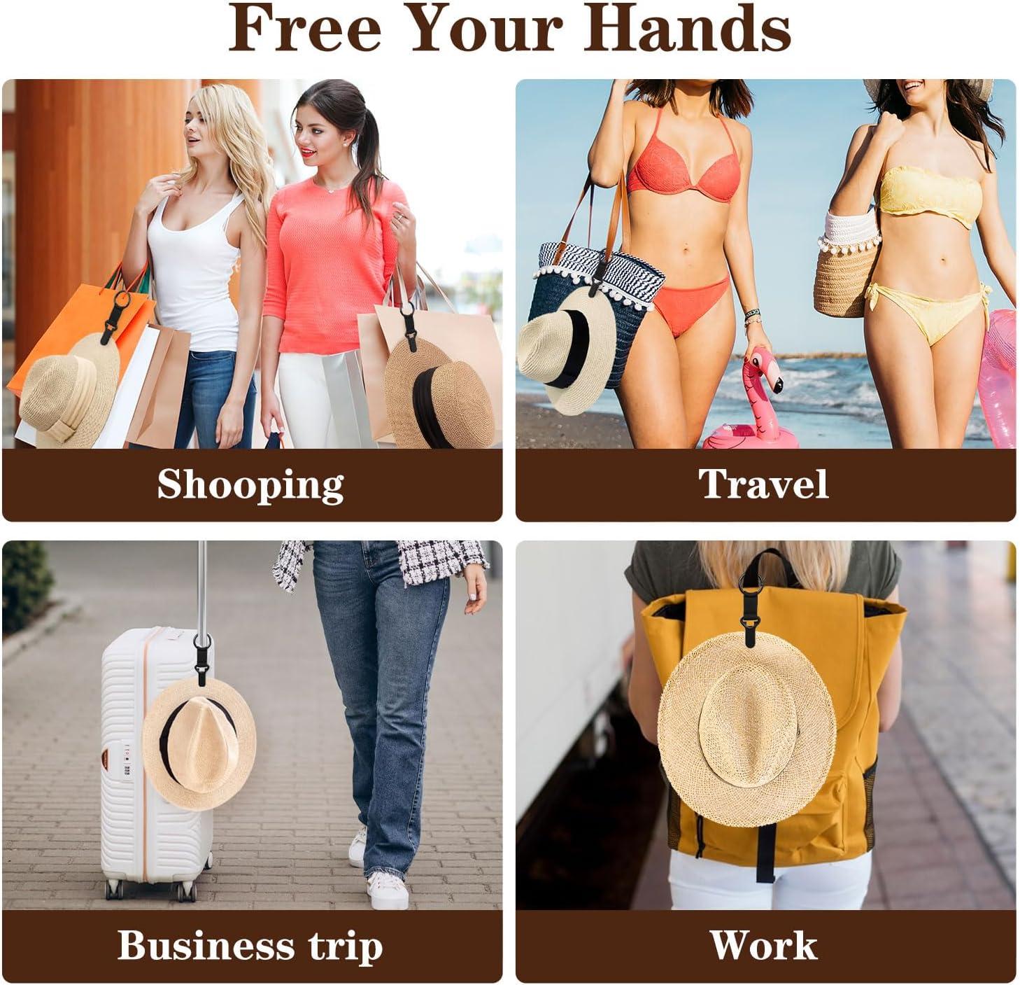 Niveaya Hat Clip for Travel on Bag – 2 Pack, Vacation Beach Cruise Essentials Accessory for Travel Handbag Backpack Luggage(Black + Gray)