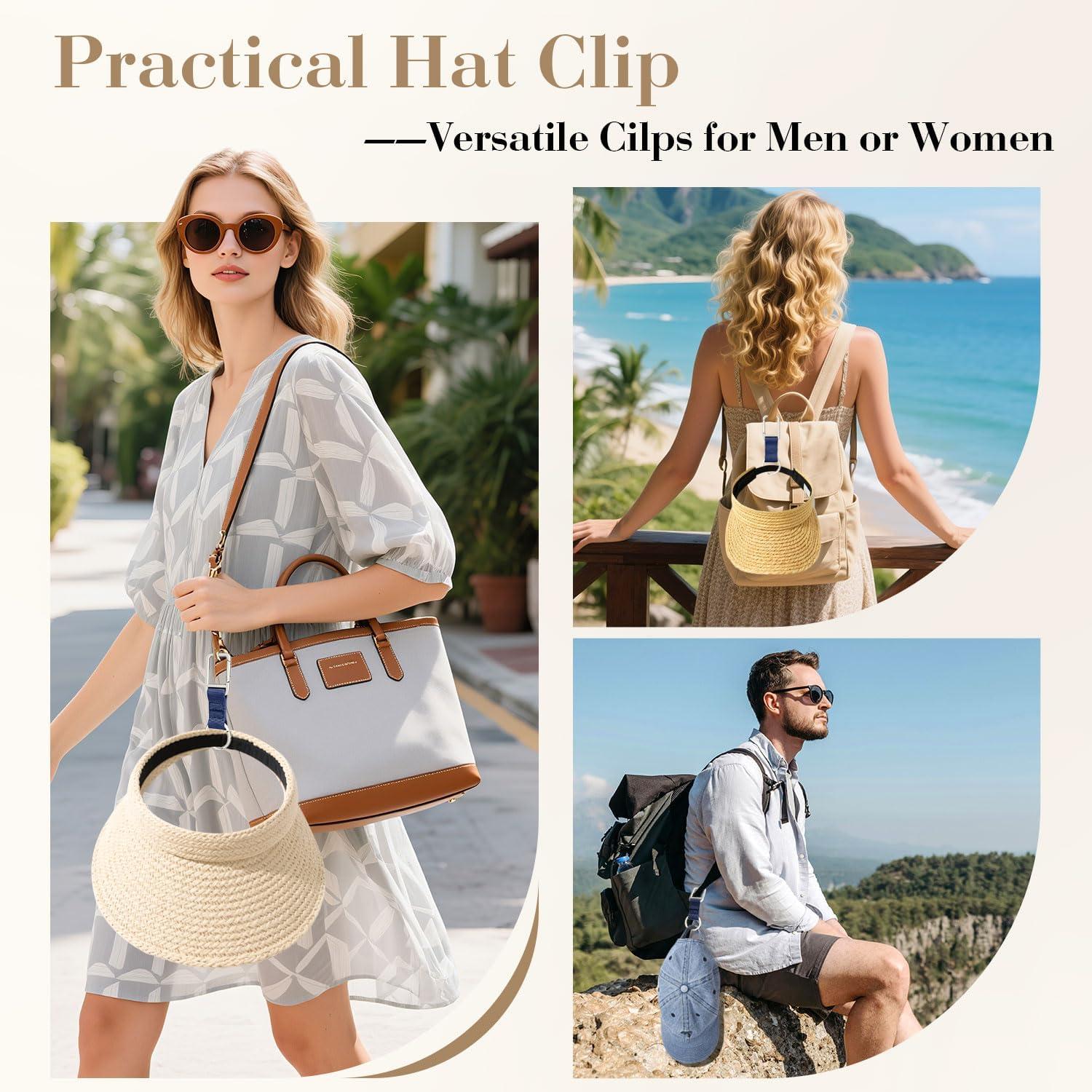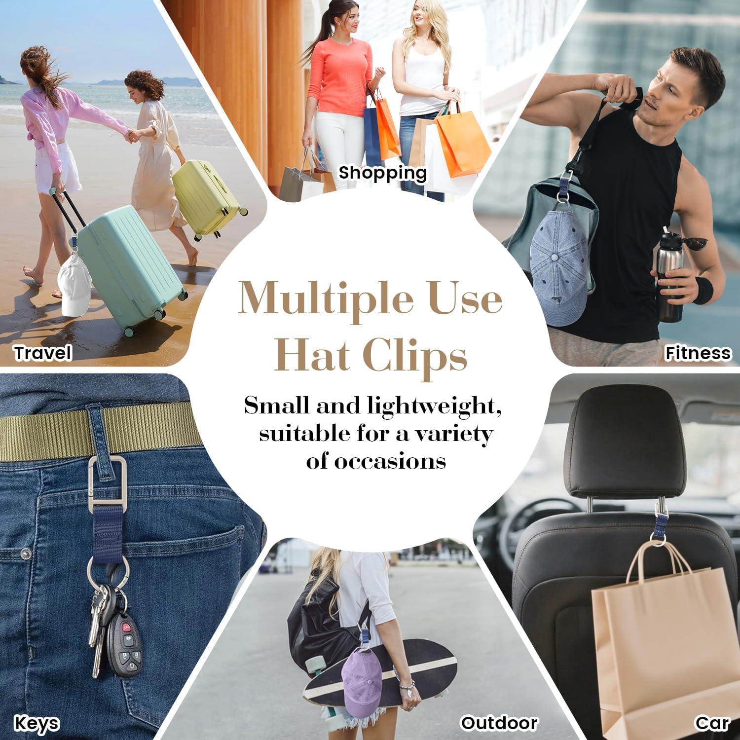【Multiple Use Clips】- Travel hat clip is versatile, can be used with circular or square clips, clipping onto luggage, backpack, handbag, purses, belt loop, small and lightweight, easy to store, suitable for students or adults