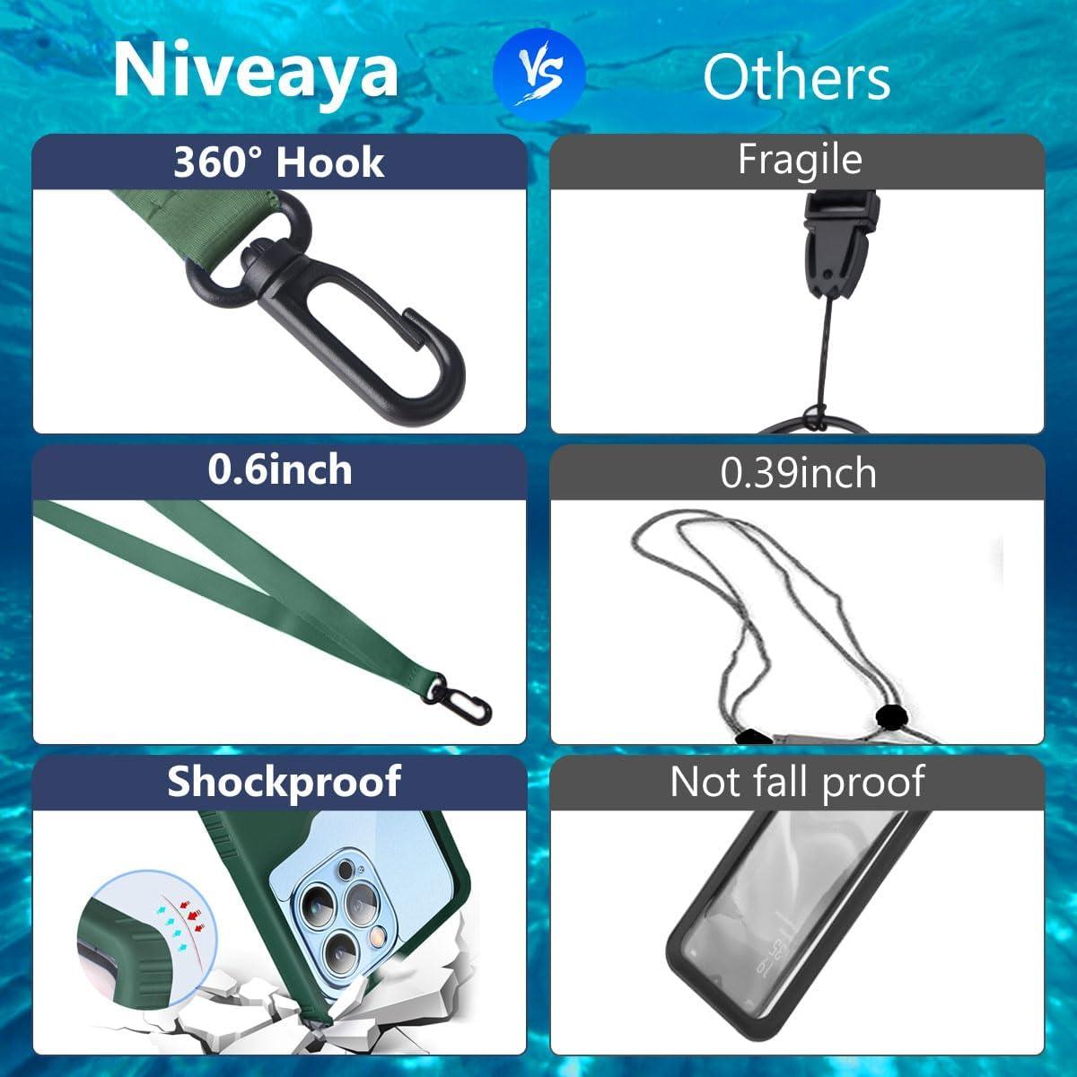 【IPX8 Certified Waterproof Pouch】- After around 1000 tests, no leakage or water damage during 100 Ft deep underwater. Niveaya waterproof pouch case is specially designed for outdoor activities such as fishing, swimming, skiing, boating, kayaking, etc., keeping your devices away from water, dust, snow, and enjoy your life.