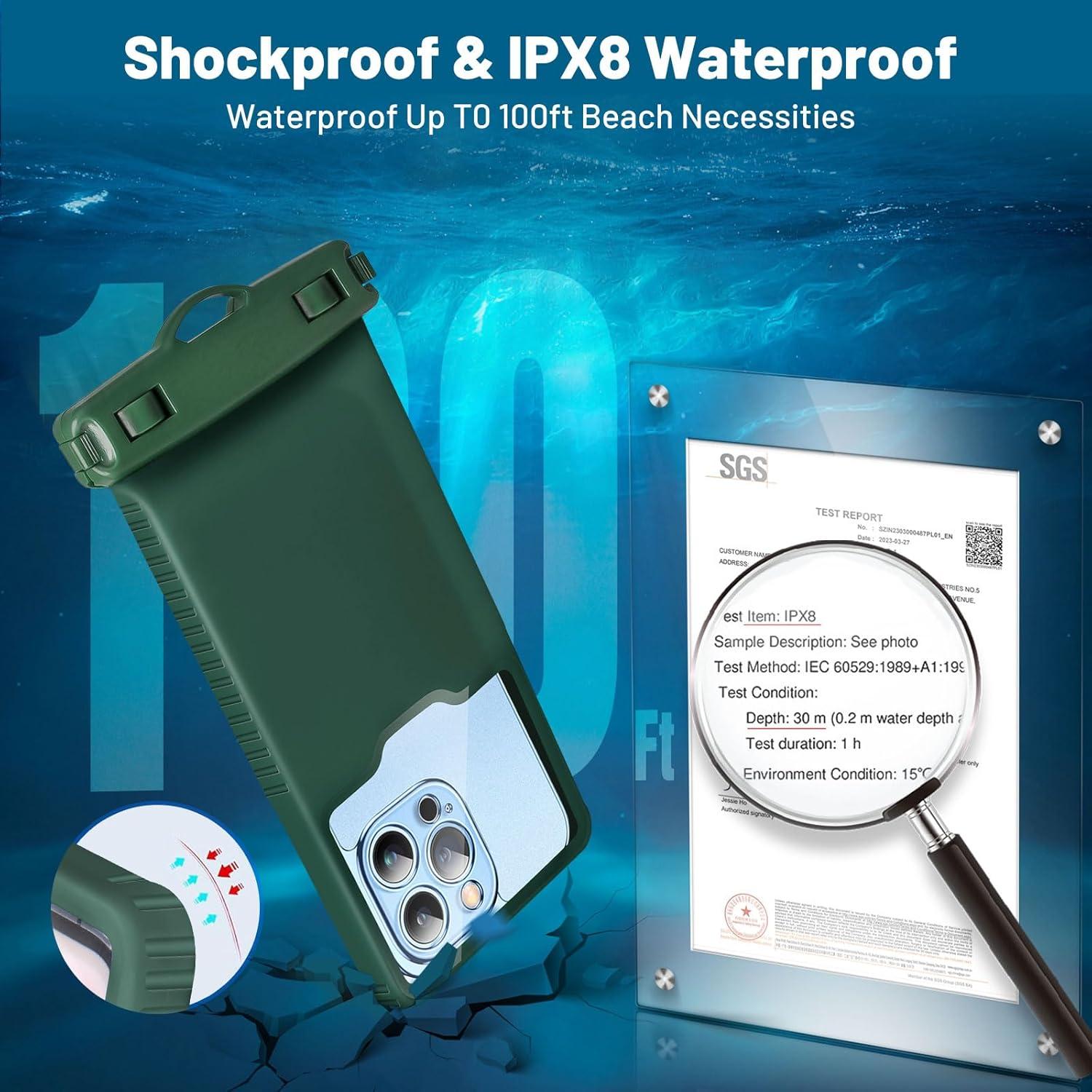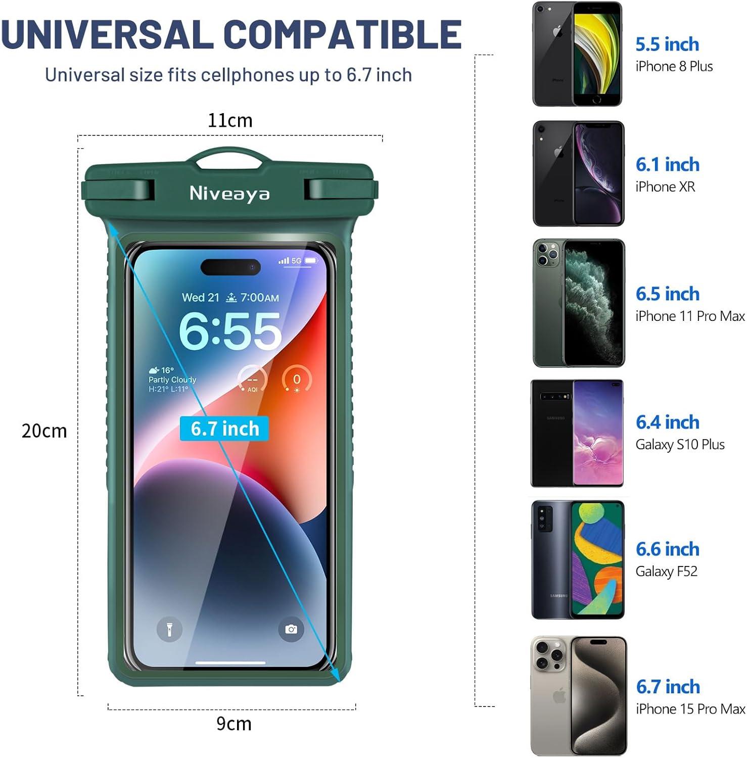 Niveaya Waterproof Phone Pouch, Waterproof Phone Case Compatible for iPhone 15 14 13 12 Pro Max Up to 7", IPX8 Cellphone Kayak Accessories, Travel Essentials 1Pack(Pack of 1 Green)